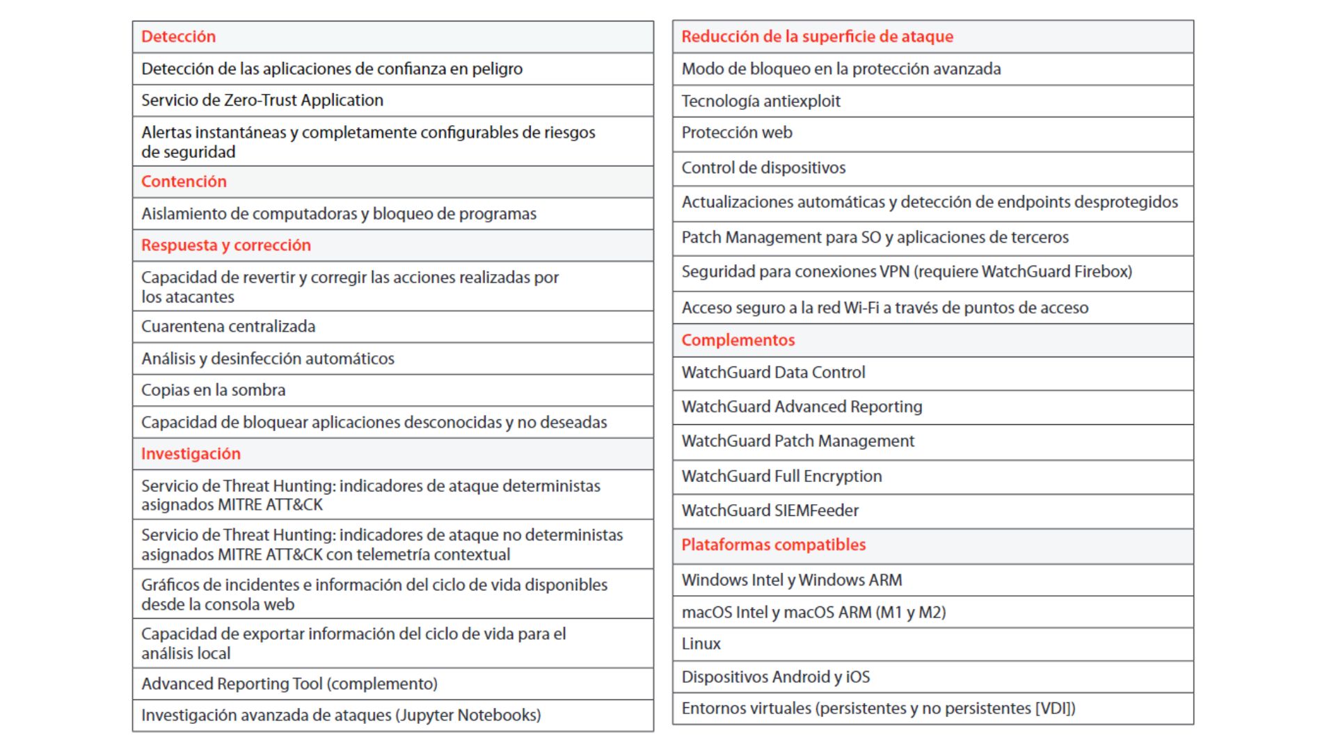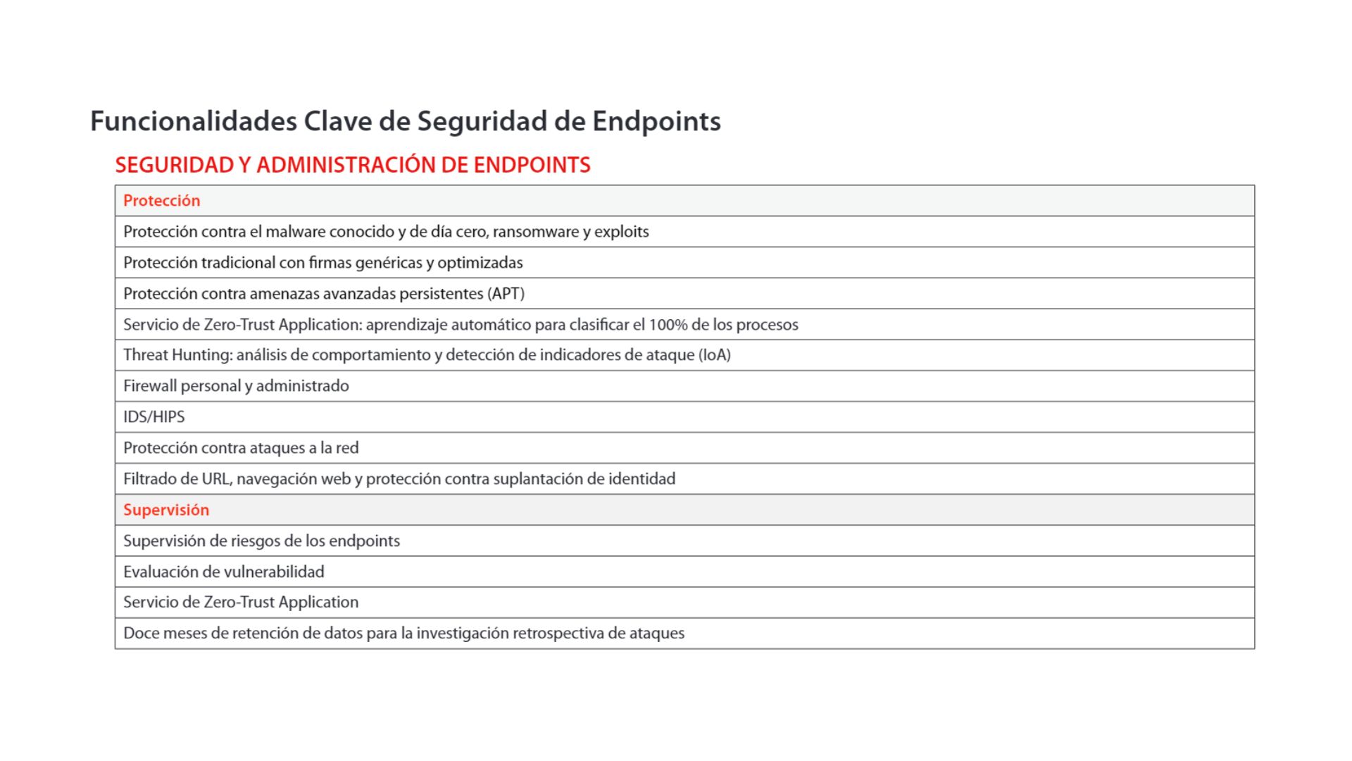 Detección de amenazas conocidas | Análisis del comportamiento del usuario | Detección de ataques anti-exploit | Monitorización continua de los sistemas | Threat Hunting incluido SIN COSTO |